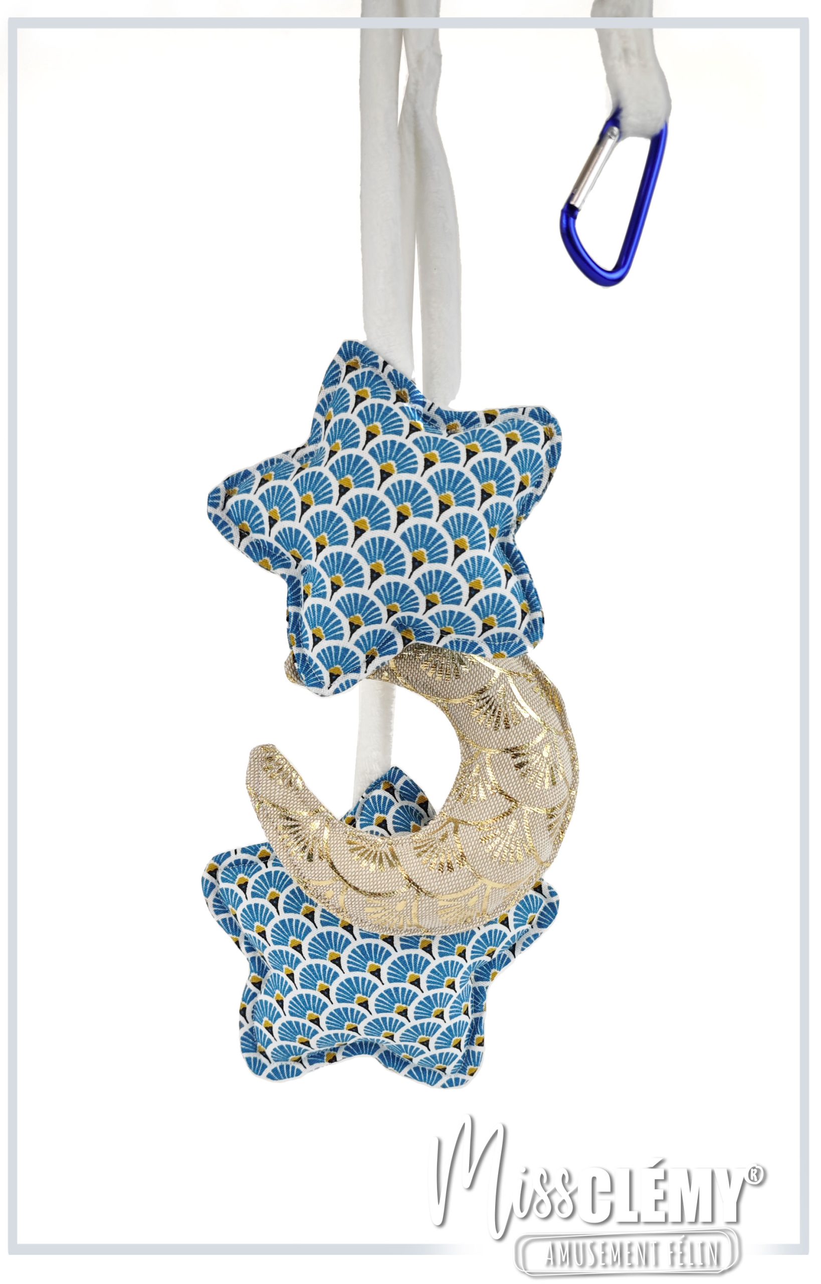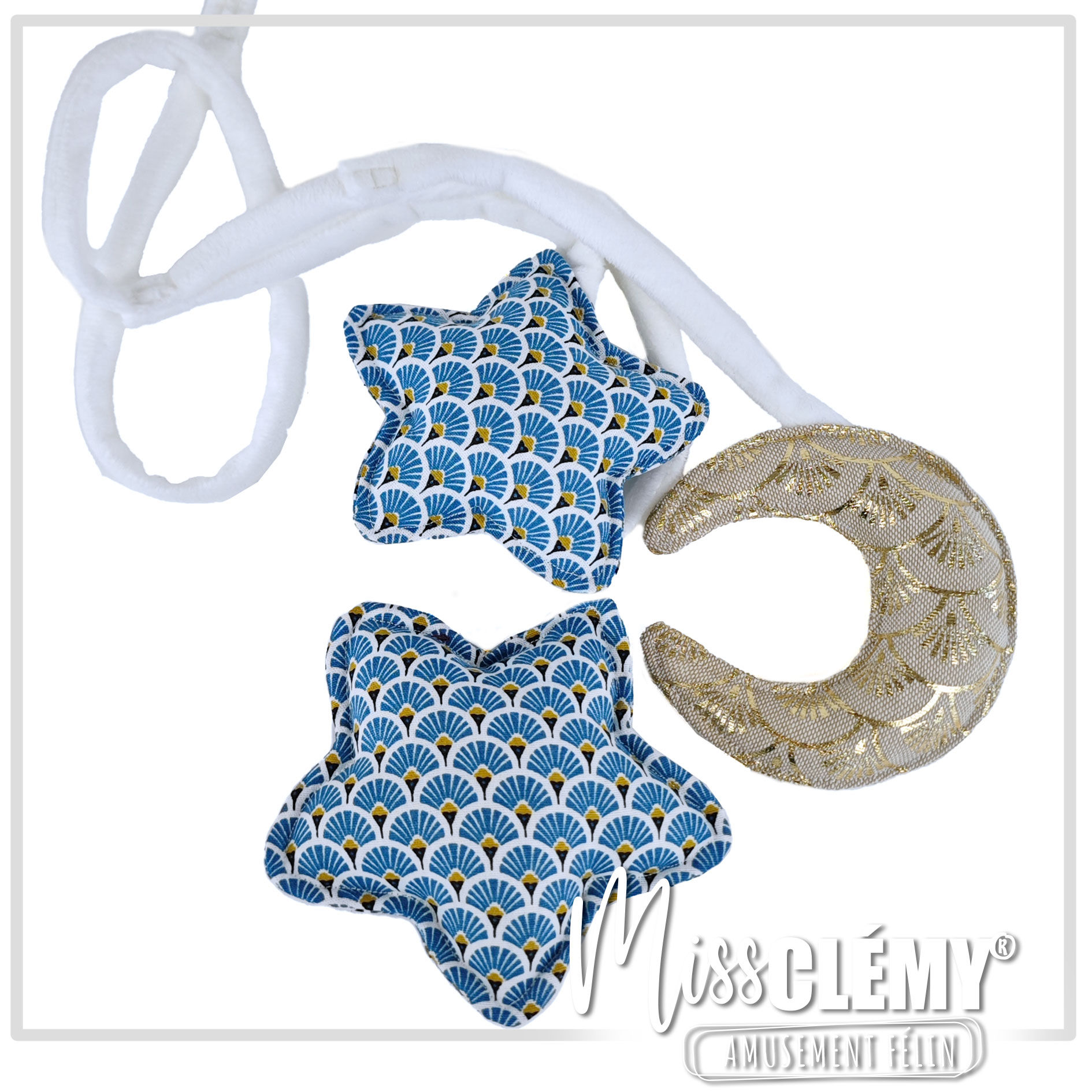 Conçues pour être attachées partout (arbre à chat, poignées…), elles cachent un petit grelot discret.